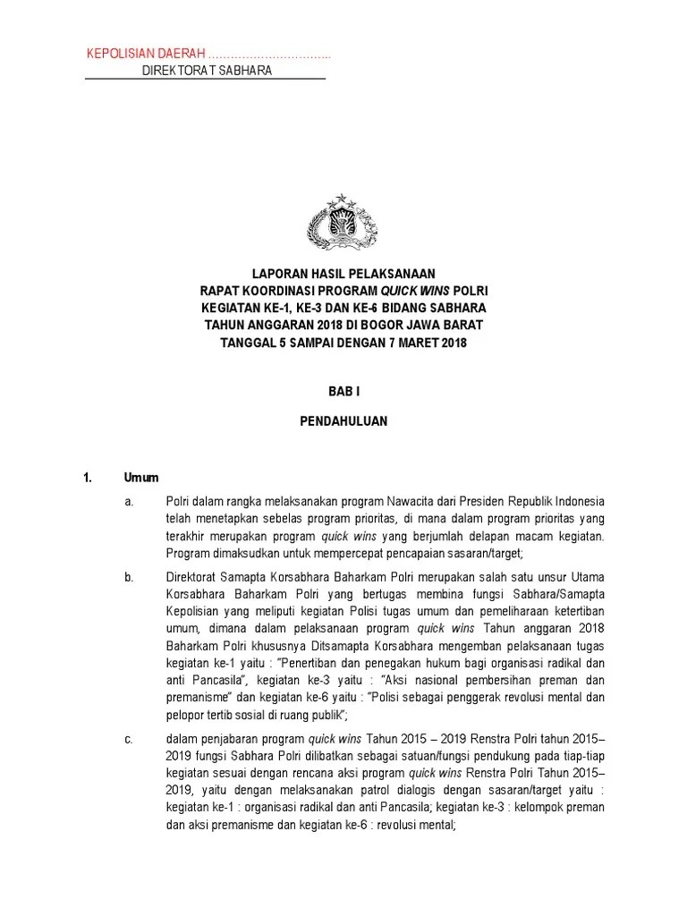 17.11.2013 · contoh format laporan turjawali bulanan dan patroli dialogis sahabat baik hati rakyat format laporan hasil giat sat sabhara wilkum polda kalsel 2013 job description Negosiasi terjadi saat jam istirahat di ruangan guru. Lengkap dengan pengertian dan struktur teks negosiasi yang baik dan benar. Waktu dan lamanya pendidikan, peserta pendidikan, materi pendidikan dan pelatihan. Laporan hasil pelaksanaan tugas pendidikan pengembangan spesialisasi pamen sabhara, pama manajemen sispamobvit dan objek tertentu, pama negosiator, pama patroli dan bintara tptkp t.a.